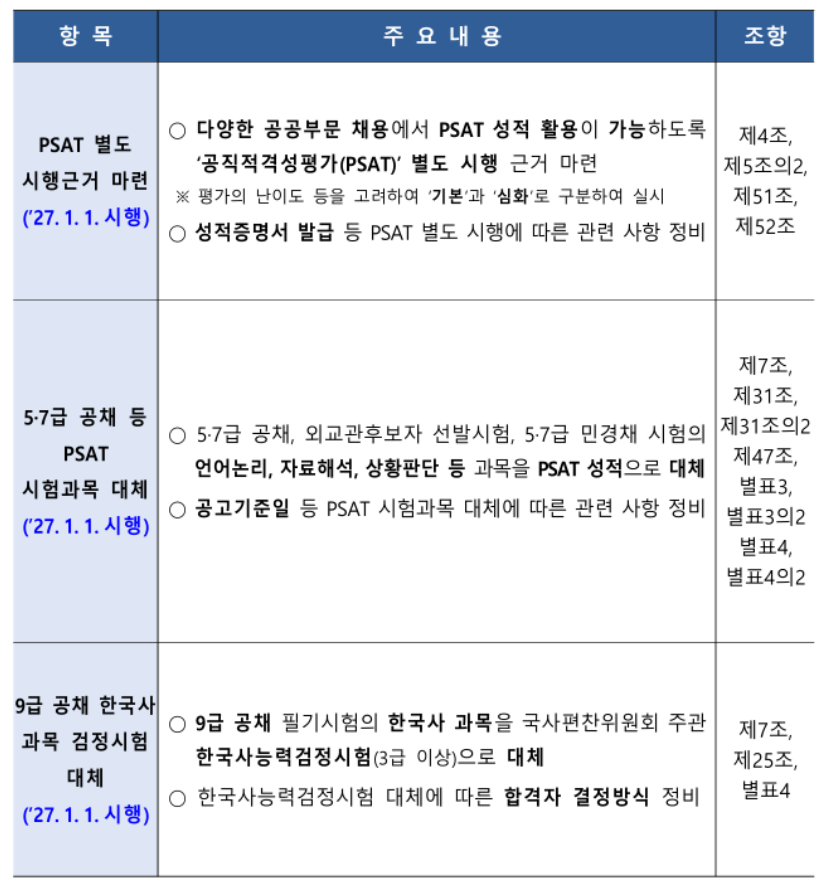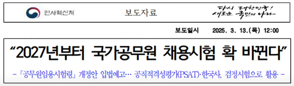 2027년부터 시행되는 지방공무원 시험 개편, PSAT 도입과 한국사능력검정시험(3급) 전환
